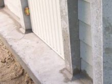 lassen Die Seitenwände werden immer von hinten nach vorn parallel zueinander aufgebaut ... ... zuletzt vorn die Torpfosten, wegen Unfallgefahr immer zusammen mit dem Dachträger verschrauben Und schon kann man die Garage erkennen, aber jetzt ist erst mal Mittagspause Die Wandplatten sind komplett montiert, und die Dachplatten werden von hinten nach vorn verlegt Der Schluss des hinteren Dachträgers mit den oberen Wandplatten zeigt den korrekten Aufbau Ansicht von hinten, Regenrinne mit Fallrohr rechts Um die Versiegelung im Sockelbereich zu schützen wird eine Betonschräge angebracht Betonschräge im Detail Die Montagelöcher werden verspachtelt Aufnahme mit dem Weitwinkelobjektiv, selbstverständlich ist im "richtigen Leben" alles schnurgrade Blick zum Tor hinaus (Weitwinkelaufnahme) Am Nachmittag ist der Aufbau fachgerecht ausgeführt, die Malerarbeiten möchte der Bauherr selbst ausführen |